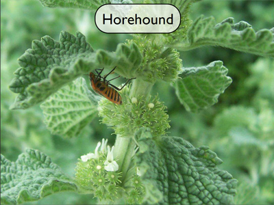 Horehound is – in mint family.  Cough Suppressant.  Can decoct or use lozenges.  David Hoffman likes it.