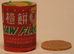 This is a tasty candy way of taking Hawthorn berries, dehydrated and flattened. Found at every Chinese market. They are both tart and sweet. It’s a way to get into hawthorn.